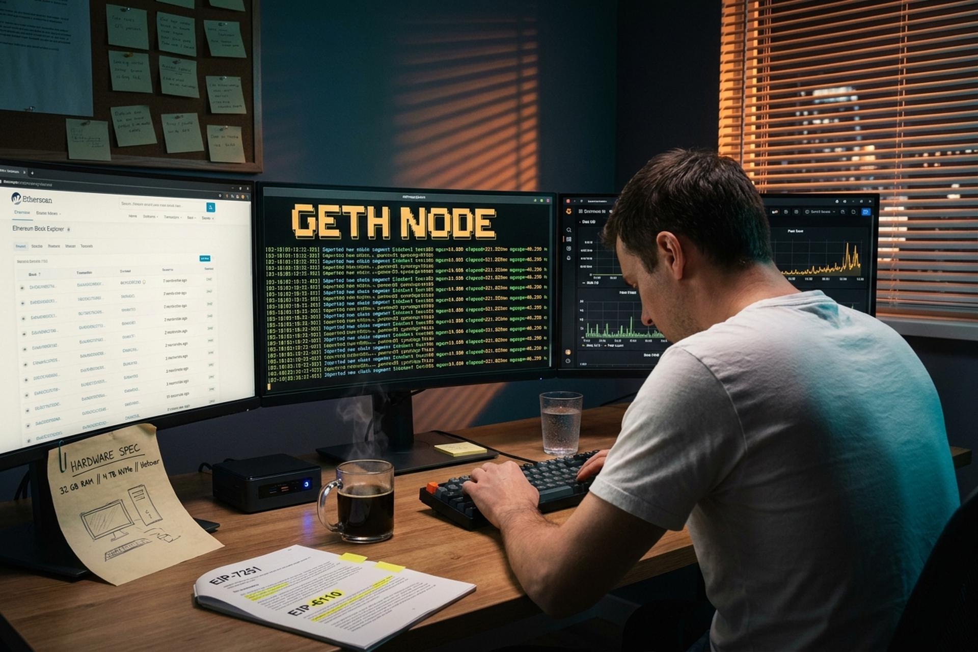 Quella frase sembra più complessa di quanto non sia in realtà. Geth, abbreviazione di go-ethereum, è il client di esecuzione originale di Ethereum, scritto nel linguaggio di programmazione Go da Jeffrey Wilcke e un team open-source globale nel 2014. Un moderno laptop con un SSD capiente può eseguirlo. Così come un box Hetzner da 30 dollari al mese. Le difficoltà che incontrano gli utenti non sono i comandi di installazione, ma le scelte che li riguardano: quale modalità di sincronizzazione scegliere, quale client di consenso abbinare a Geth, cosa succede dopo la Merge, come mantenere attivo il nodo quando il disco si riempie alle 2 del mattino.