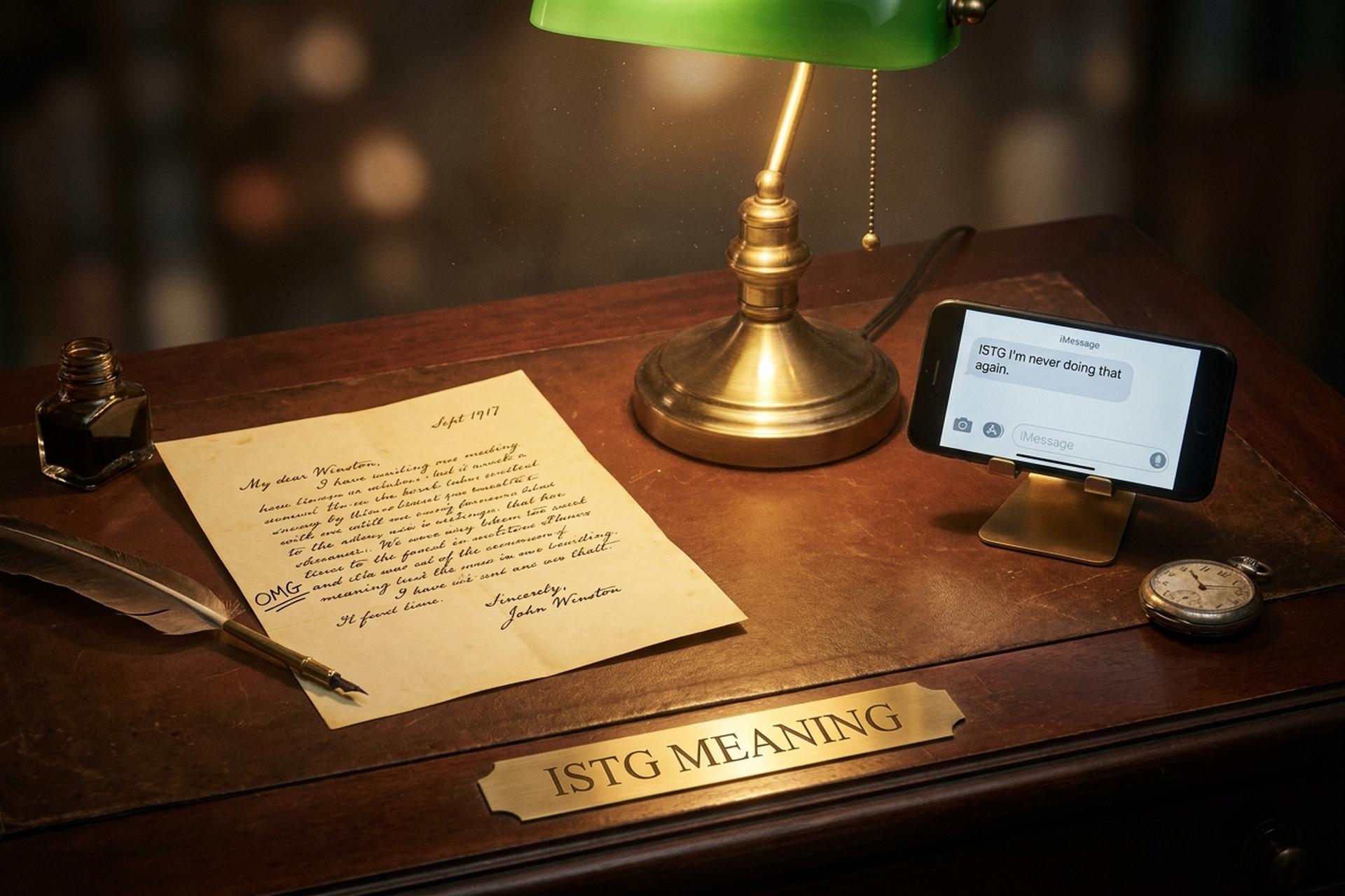 ISTG는 나중에 등장했습니다. 2000년대 초반, AIM, 야후 메신저, 그리고 초기 SMS가 약어의 유행을 이끌었죠. ISTG, LOL, BRB, AFK, OMG는 모두 글자 수 제한을 줄이기 위한 수단으로 함께 유행했습니다. ISTG가 어반 딕셔너리에 처음 등재된 것은 2008년 1월 3일입니다. 일부에서는 2007년이라고 주장하기도 하지만, 그 이전 항목들은 관리자에 의해 삭제되었을 가능성이 있습니다. 이후 페이스북 상태 업데이트 시대를 거치며 꾸준히 사용되었고, 2010년대 후반에는 스냅챗과 왓츠앱에서 사용 빈도가 증가했으며, 2020년에서 2021년경에는 틱톡에서 Z세대의 표준 어휘로 자리 잡았습니다.